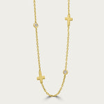 Wear your faith in an edgy manner in our Laced in Crosses Necklace! This necklace features a series of rose cut zirconia stones, each encased in delicate bezels, spaced elegantly between beautifully thick crosses and along...