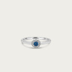 This stunning ring features a brilliant round cut aquamarine coloured center stone, encircled by a shimmering pave halo that enhances its captivating hue. Ideal for those who appreciate subtle sophistication, this piece adds a touch...