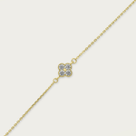 Sweet, sparkly, and effortlessly chic. This dainty bracelet features a petite four stone clover that catches the light from every angle, adding just the right touch of shimmer. Perfect for everyday wear or stacking, it’s a subtle...